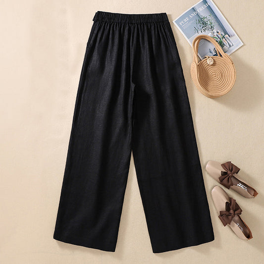 【Coton Et Lin】Pantalons Décontractés À Jambe Large